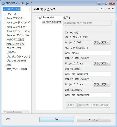 プロジェクトには何のマッピングファイルもない場合、初期値を"new_file.xmf"にします。プロジェクトにはマッピングファイルが既に存在している場合、初期値を自動的に名前を重ならないように"new_file2.xmf"、"new_file3.xmf"の順にします。