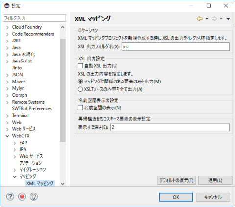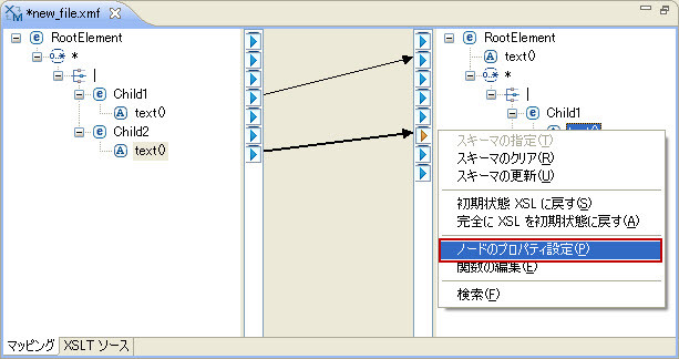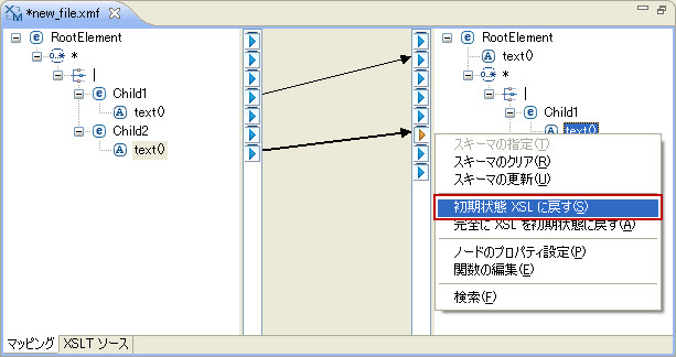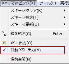 | 自動XSL出力(A) | このトグルメニューで、XMLマッピングファイルを保管すると、XSLTソースコードをXSLファイルに出力できます。 | 自動XSL出力 | ||