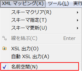 | 名前空間(N) | このトグルメニューで、ソーススキーマノードとターゲットスキーマノードの名前空間を表示する。 | 名前空間の表示 | ||