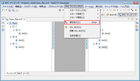 既存のXMLマッピングファイルをロードして開くには以下のような操作を行います。