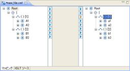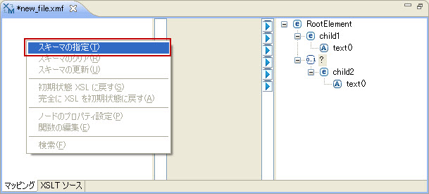 ・変換元のXMLファイルの内容:ルートとなるノードです。要素ノードでもあります。 ・スキーマエリアの最上部に表示されます。 |