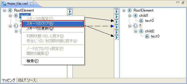 | XML マッピング(X) | スキーマクリア(R) | ソース(S) | ソーススキーマエリアをクリアします。 | スキーマのクリア |