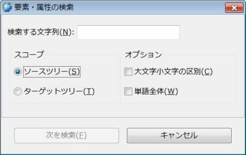 | 編集(E) | 検索/置換(F) | スキーマエリアのスキーマノードを検索します。 | ツリーの検索 | |