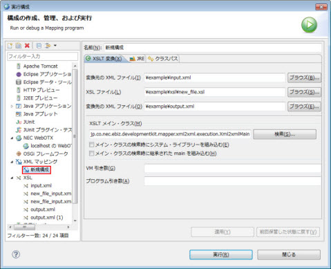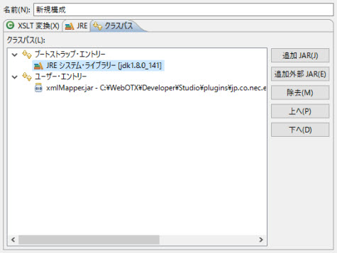 | 実行(R) | 実行(R) | XMLからXMLへの変換処理を画面から実行します。 | 実行 | |