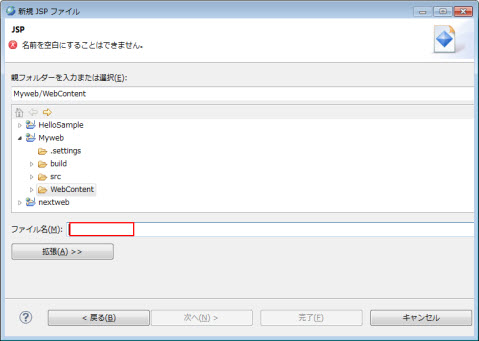 XHTML マークアップつきのJSPファイルを作成します。 |
