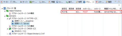 設定情報の変換機能で変換された設定情報をWebOTX Developerのパラメータシートビューで確認・修正できます。