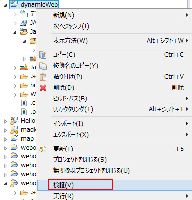 dynamicWeb を右クリックして 検証 をクリックします。