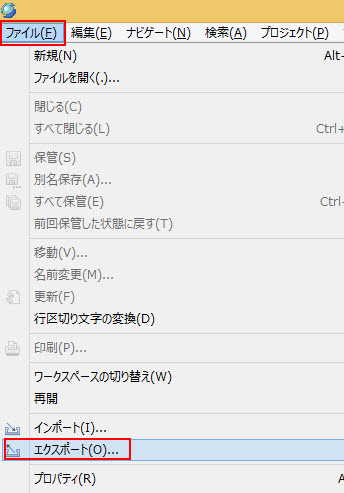 メニューファイル > エクスポート を選択すると エクスポート ダイアログが表示されます。