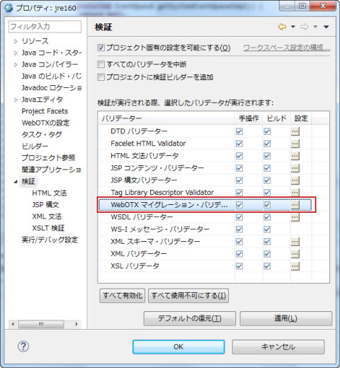 プロジェクト個別で設定したい場合、プロジェクトの右クリックメニューの プロパティー > 検証 ページで設定します。