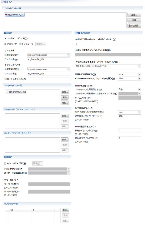 HTTP BCのエンドポイントの設定が記述されます。 |