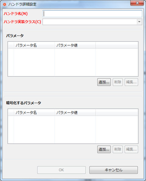 ハンドラの実装内部でパラメータを取得するために、キーとなるパラメータ名を指定します。 |