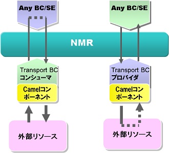 Camelコンポーネントのコンシューマが外部リソースからメッセージを受け取り、Inメッセージとしてメッセージエクスチェンジに設定して、NMRに送信します。 |