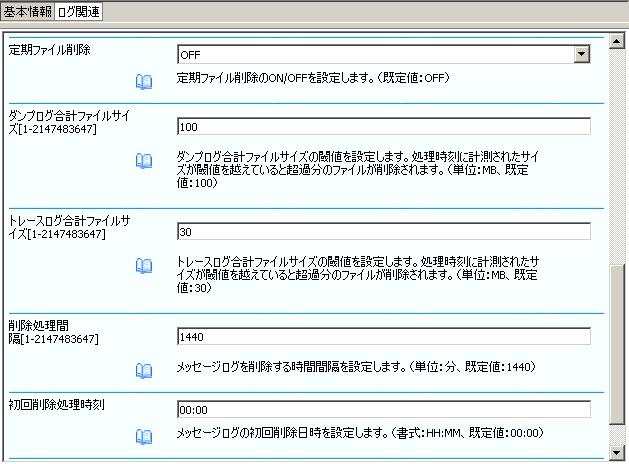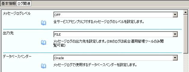 | 出力先(Output) | FILE:メッセージログをファイルに出力します。 DB:メッセージログをDBに出力します。DB出力の詳細は [ 2.2. メッセージログの出力(データベース)] を参照してください。 |