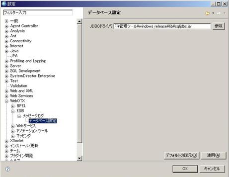 [ウインドウ]-[設定]をクリックして、下図のように、右側の設定タブに「参照」ボタンを押し、JDBCドライバを指定できます。