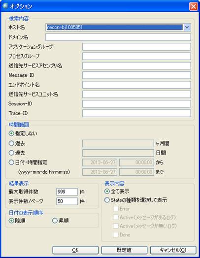 「オプション」画面に設定された検索条件に合うメッセージログを検索し画面に表示できます。