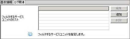 3.フィルタするサービスユニットのリストから[追加]ボタンを押し、ログ出力から除外したいサービスユニット名を入力する。