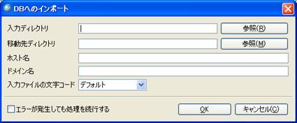メッセージログのメイン画面で「インポート」ボタンを押すと、「インポート」ダイアログが表示され、メッセージログファイルをDBへインポートすることができます。