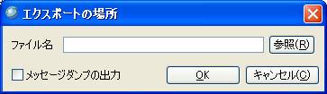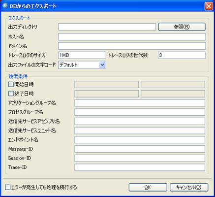 メッセージログのメイン画面で「エクスポート」ボタンを押すと、「エクスポート」ダイアログが表示され。入力した検索条件に合致するログをDBからディレクトリにエクスポートすることできます。