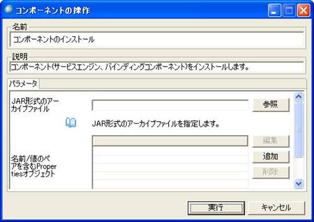 JAR形式のアーカイブファイル : コンポーネントのインストールファイルに対する絶対パスを指定します。