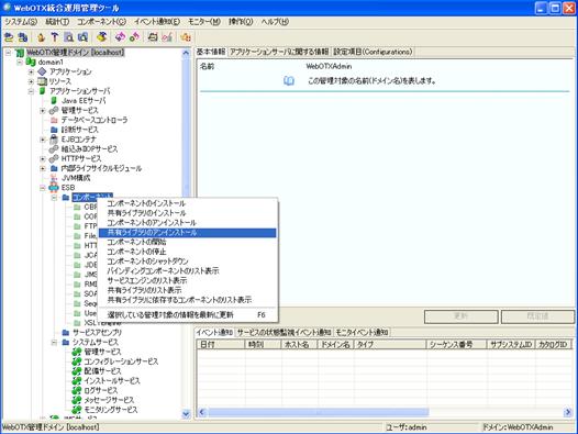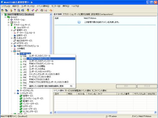 Standardでのコンポーネント(バインディングコンポーネント、サービスエンジン、共有ライブラリ)のインストール/アンインストール、およびライフサイクル管理(起動/停止/シャットダウン)の操作はExpressと同じです。