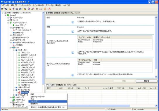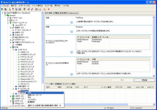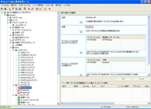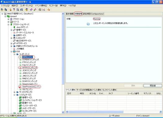 コンポーネント(バインディングコンポーネント、サービスエンジン)の状態は起動(Running)、停止(Stopped)、シャットダウン(Shutdown)の3つがあります。