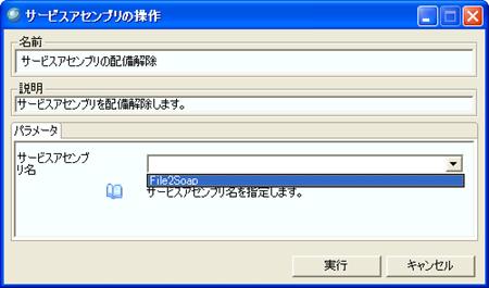選択したサービスアセンブリを停止する場合は「実行」をクリックします。