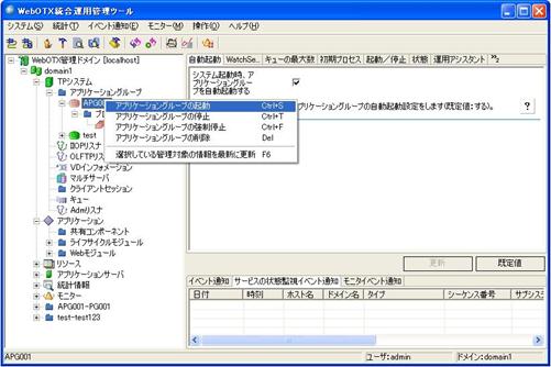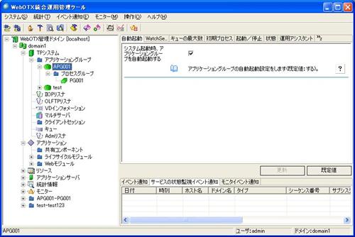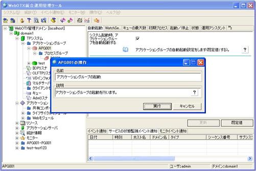 アプリケーショングループ・プロセスグループの詳細については、WebOTXマニュアルの[ TPモニタ ] を参照してください。