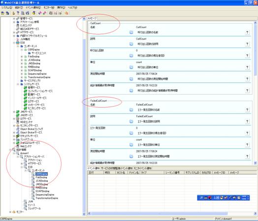 WebOTX ESBの実行環境で動作するコンポーネントやサービスアセンブリなどの管理対象に対する統計情報採取が行えます