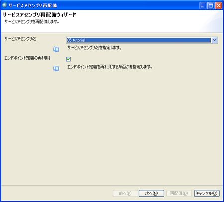 クリックすると、「再配備するサービスアセンブリ」のパラメータ変更画面に遷移します。 |