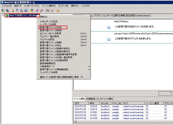 【図1.1.4.2a】統合運用管理ツールの管理対象ドメインの作成操作画面