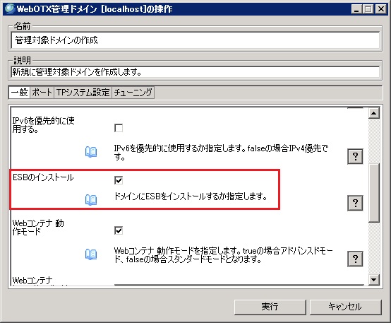 ドメイン作成時にESBのインストールの有無を選択する方法について説明します。