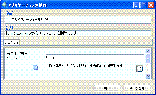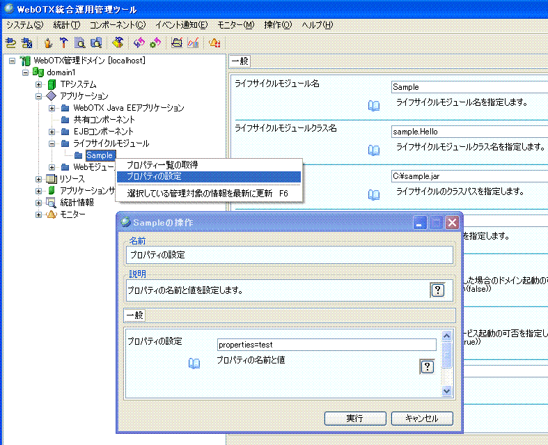 運用管理コンソールの場合、左側のツリービューより作成したライフサイクルモジュールを選択し、「操作」リストの下の「プロパティ一覧の取得」または「プロパティの設定」を選択してください。