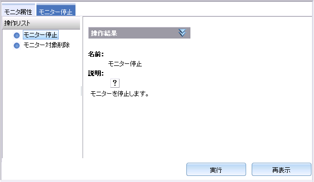 リストで表示された操作により、モニターの追加、削除、開始、停止を行うことができます。