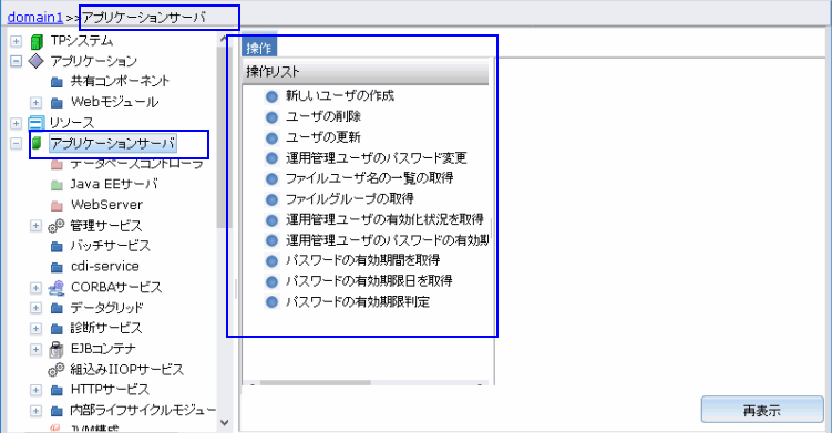 | 「リフレッシュ」 | 接続サーバからドメインの最新情報を取得し、運用管理コンソールの画面を更新します。[リフレッシュ]を参照してください。 |