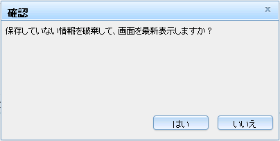 運用管理コンソールで何か変更を行っている場合、リフレッシュボタン押下時に、確認ダイアログを表示します。「はい」をクリックした場合、変更された内容を破棄して、画面を最新表示します。