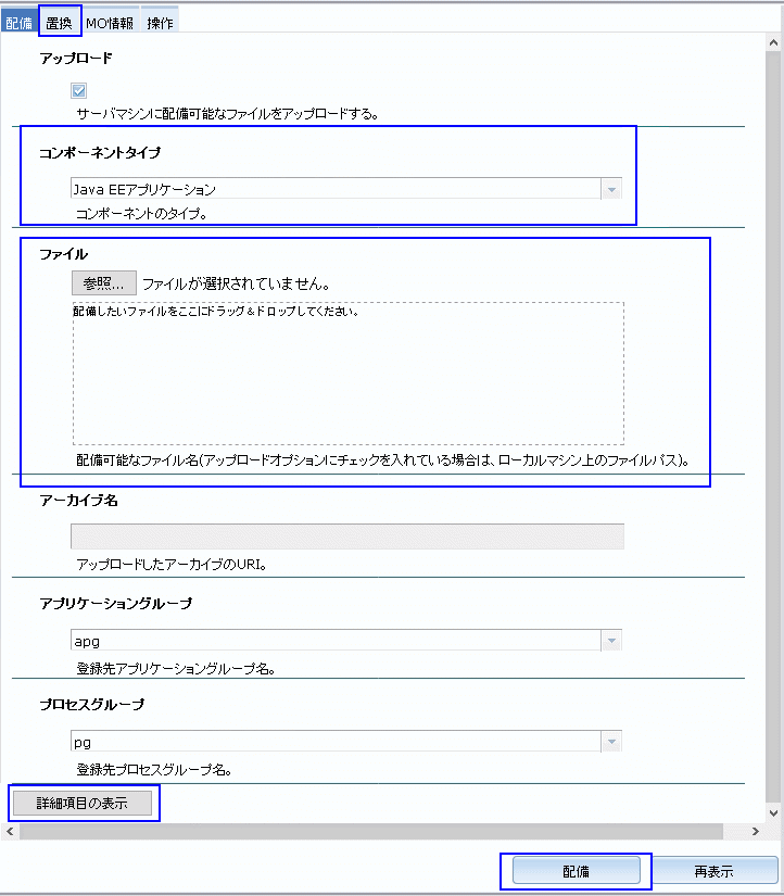 | 配備・置換 | 配備・置換を行う時、当該操作の情報を出力します。 |