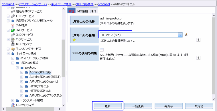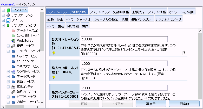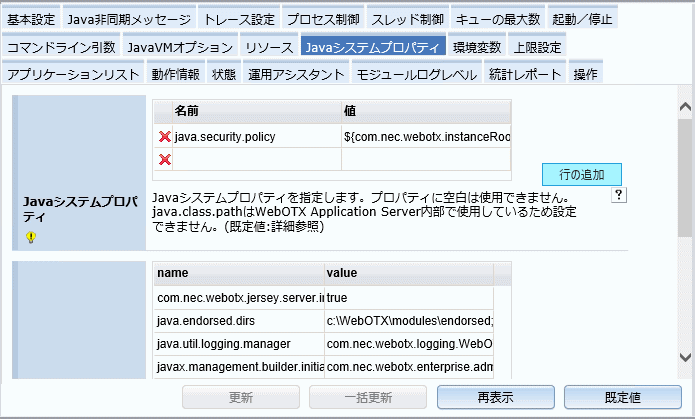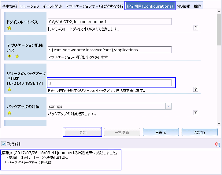 | 更新成功しました。 | 変更した属性のJMXサーバへの更新に成功しました。 |