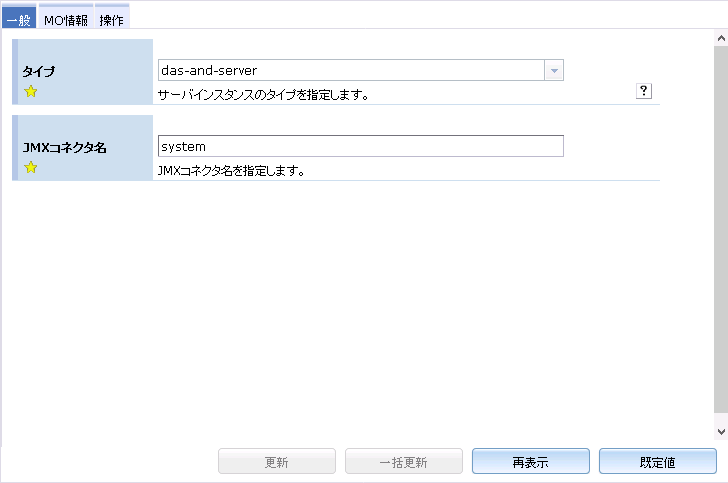 | 「既定値」ボタン | 選択された管理対象の全属性の既定値を取得・再表示します。 |