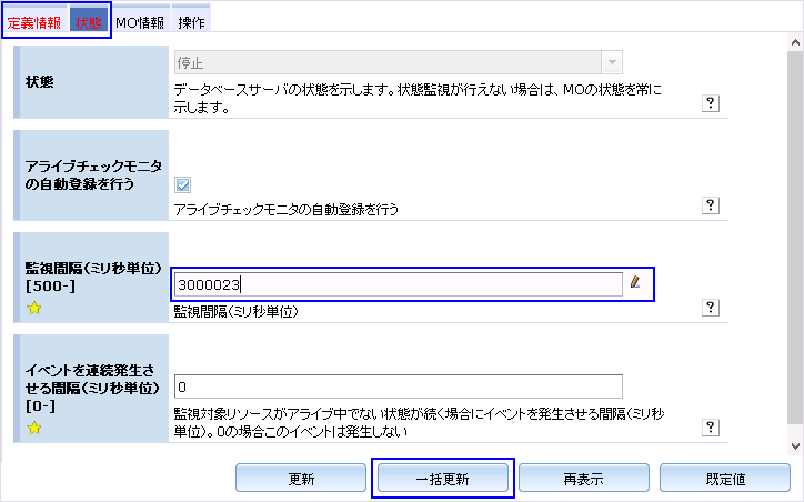 | 属性の変更 | MOの属性を変更し、「更新」や「一括更新」ボタンをクリックすると、変更情報を出力します。 |