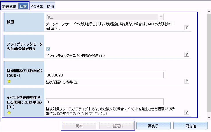 | 「一括更新」ボタン | 選択された 管理対象の全属性の情報を更新・再表示します。 |