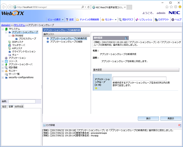 運用管理コンソールを利用して、アプリケーショングループとプロセスグループを作成する手順を説明します。