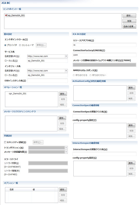 JCA BCのエンドポイントの設定が記述されます。 |