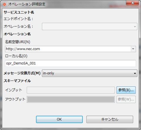 BCが提供するオペレーション名と名前空間を設定します。 エンドポイントロールがコンシューマの場合呼び出し先のオペレーション名と名前空間を設定します。 |