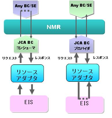 リソースアダプタからのRecordを受信するとメッセージエクスチェンジに受信データを変換しNMRに渡します。NMRからの返却データはRecordに変換してリソースアダプタに渡します。