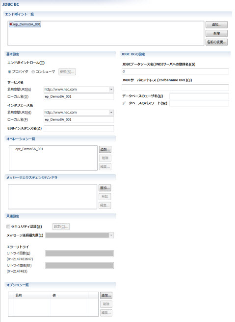 JDBC BCのエンドポイントの一覧を表示します。 |