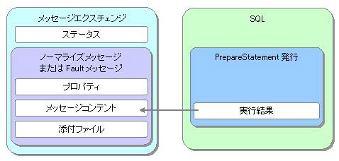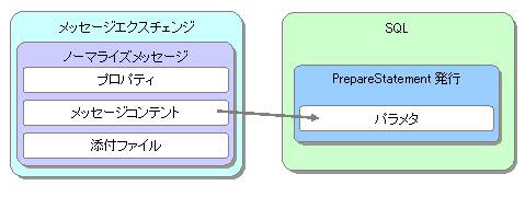 (ノーマライズメッセージからSQLへの変換)では、エンドポイントに定義されたパラメータ情報に従って、ノーマライズメッセージからデータを取り出し、SQLを構築します。