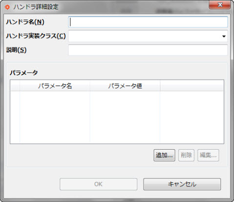 ハンドラの実装内部でパラメータを取得するために、キーとなるパラメータ名を指定します。 |