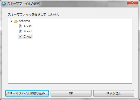 A.xsd が、B.xsd を include している場合、A.xsd と B.xsd ともschema フォルダ配下に取り込んでください。