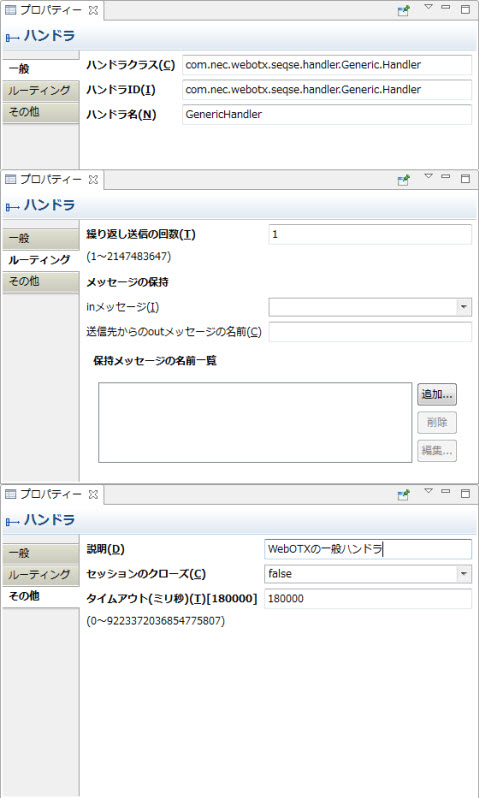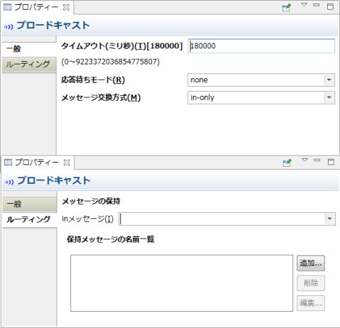・ブロードキャストのサービス/ハンドラに、timeout、message-retentionのinNameとretention-namesを設定しても無効で、ブロードキャストの設定に従います。