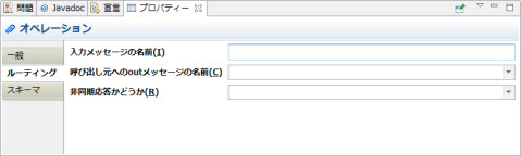固定的にinメッセージとして呼び出し先へ送信するのメッセージの名前を指定します。 @まだ呼び出されていないサービスに関連するメッセージの名前が指定できない。 A"in"、"out"(小文字)が指定できない。 Bブロードキャストの送信先エンドポイント/ハンドラにある場合、該当項目が無効 |